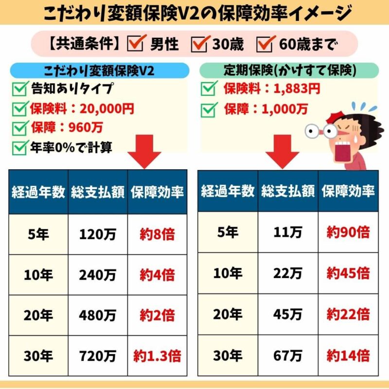 こだわり変額保険V2は、保険料に対して得られる保障が少ないです。