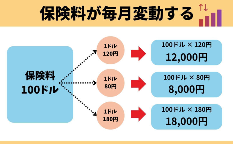 為替の動きは誰にも予測することができず、想定以上の円安になると保険料の支払いが厳しくなり、家計を圧迫してしまうリスクがあります。